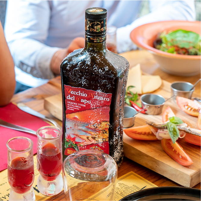 Ce Vecchio Amaro del Capo est agrémenté de peperoncino, qui est un piment de Calabre. Son niveau de piquant est doux, ce qui offre à la liqueur une touche légèrement pimentée. Profitez de la boisson glacée pour mettre en valeur le goût et les senteurs des herbes et du piment.